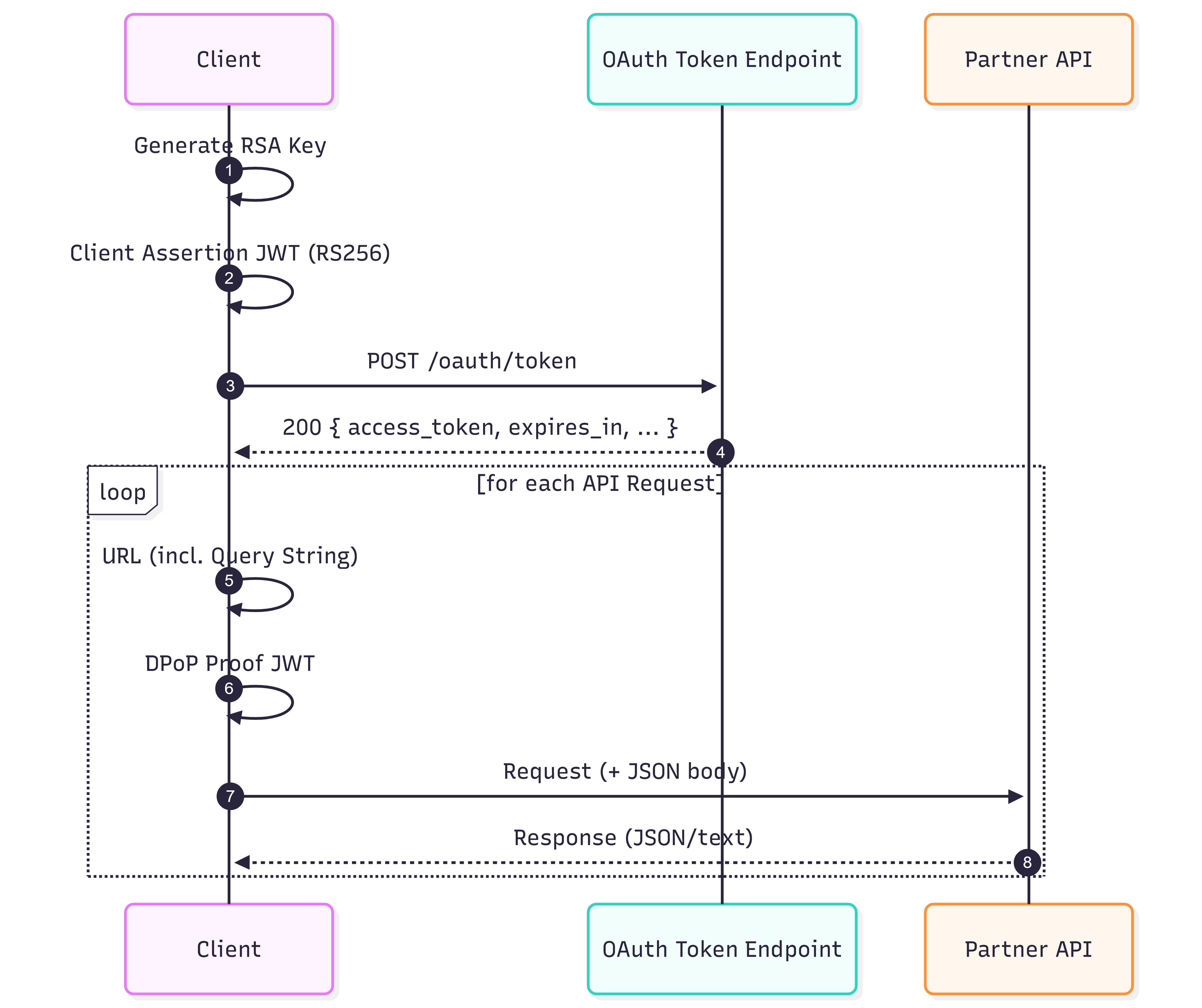 Für Partner-Integrationen authentifiziert sich Ihre Organisation über eine signierte JWT Client Assertion.